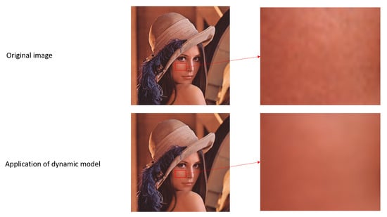 The algorithmic process gives the best values in the dynamic case and where is 1.0. In terms of the DSSIM criterion, these two cases give better results. However, the value of 1.0 leads to too much smoothing over the whole image, as shown in Figure 10.