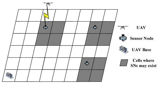 . In actual scenarios, precise position information may not be easy to obtain and cannot even be reliably predicted through explicit models. Thus, we assume that the UAV is not aware of the precise information about which cell the SN is located in. It is supposed that the UAV flies at a constant altitude,