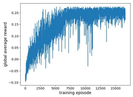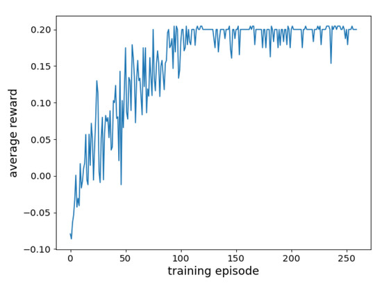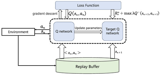 When training the DQN algorithm, the agent will choose to perform the action with the highest value based on the greedy strategy or randomly select an action in the action space. Then, it will receive a reward, , given by the environment and move to the next state, . The obtained are stored in the experience replay buffer. When the number of samples stored in the experience replay buffer reaches the maximum capacity, a small batch of samples are randomly selected from them to train the estimated Q-network and the target Q-network. Then, the estimated Q-network parameters can be updated using the gradient descent method and periodically update the target Q-network parameters.