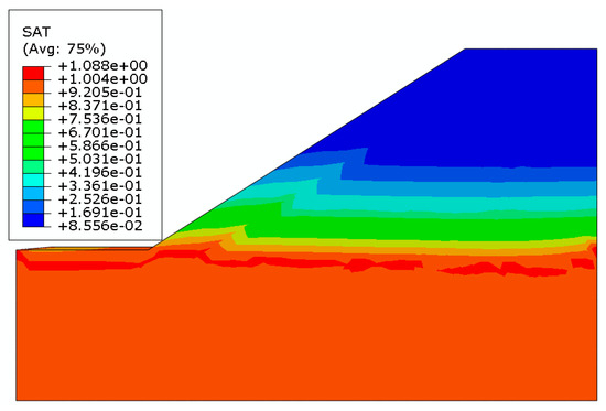 Image depicting the saturation distribution of the slope after the rainfall has ended (condition 4).