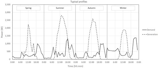 In this study, time series data with a temporal resolution of one hour were registered to model a typical household’s energy demand. Figure 2 displays typical seasonal values for a residential customer’s daily demand.