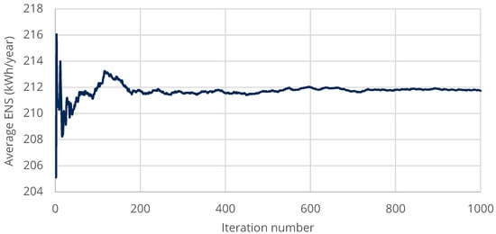 Monte Carlo simulation (MCS) techniques can be executed sequentially or non-sequentially []. By sequentially sampling the states of the system’s component parts, the sequential MCS simulates the chronology of the stochastic process of system operation. The earlier states, such as the battery’s SOC status, determine the current state of a renewable energy system with energy storage. Typically, there is no connection between residential demand and PV generation. The complexity of this reliability analysis is better handled by a sequential MCS. Other methodologies, such as reliability evaluation based on analytical models or Markov models, cannot be used to realistically evaluate SAPV systems [].