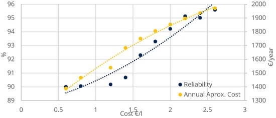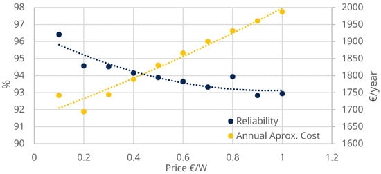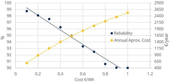 SAPV systems are a commercially viable and cost-effective solution for residential users without access to the DN, according to many research works []. The initial expenses of PV panels, batteries, and installation have an amortization period that is less than the PV plant’s useful life, according to [,]. Because of this, for many residential customers, the reliability of the electrical supply—rather than the expense of the investment—is the most important aspect to consider when planning the installation of an SAPV system. As long as there is a high level of supply reliability guaranteed, many private home investors are willing to pay the investment costs of the PV generation system []. Because of this, an optimal design process for the SAPV system is necessary, one that takes into account all of the system’s uncertainties.
