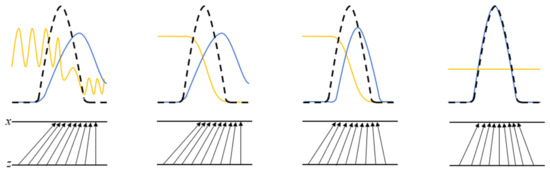 As shown in Figure 3, the yellow solid line represents the discriminative distribution, while the black dashed line and the blue solid line represent the generated real and fake samples, respectively. The horizontal line z is the sampled region. The upward arrow represents the mapping relationship of , and contracts in the high-density area of while expanding in the low-density area. When and reach a point where neither can improve, the discriminator is unable to distinguish between the two distribution classes.