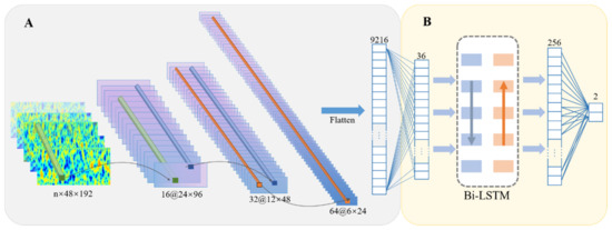 Figure 8 illustrates the construction of the classifier module: the classification network flattens the features extracted by the feature extractor and connects them to a fully connected layer. To reduce the computational complexity of the classification network, the feature vector is mapped to a 36-dimensional space. Furthermore, a Bi-LSTM layer is added to extract temporal features, followed by two additional fully connected layers for further feature extraction. The former uses a sigmoid activation function with an output size of 256, while the latter uses a soft-max activation function with an output size of 2.