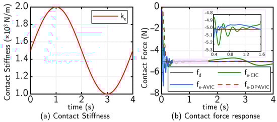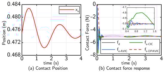 - Cao, H.; Chen, X.; He, Y.; Zhao, X. Dynamic adaptive hybrid impedance control for dynamic contact force tracking in uncertain environments. IEEE Access. 2019, 7, 83162–83174. [Google Scholar] [CrossRef]