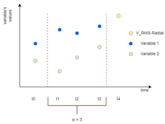 One of the approaches used for predicting future values in time series is regression [49]. In the described case, as an input, regression models take variables selected in Section 2.2 and give as an output. A modeling concept in regression manner involves selecting previous variables’ values from a time-window of a fixed length.