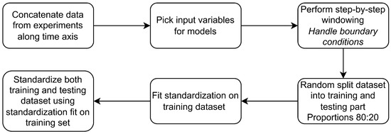 The raw data acquired from the measuring experiments require some attention in the context of preprocessing. The first step that involve variables that could be informative in the context of modeling was performed in Section 2.2. Such a truncated dataset should be further processed and analyzed to take into consideration what approach will lead to results that are reliable and could be useful in production.
