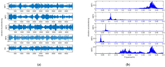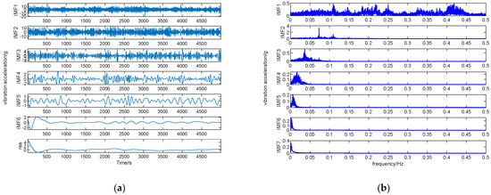 Original data and EMD decomposition results of each sequence. (a) Time-domain diagram of the EMD decomposition. (b) Spectrogram of the EMD decomposition.