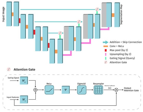 - Schlemper, J.; Oktay, O.; Schaap, M.; Heinrich, M.; Kainz, B.; Glocker, B.; Rueckert, D. Attention Gated Networks: Learning to Leverage Salient Regions in Medical Images. Med. Image Anal. 2019, 53, 197–207. [Google Scholar] [CrossRef]