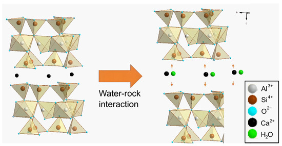 The hydrophilic swelling of clay minerals mainly causes the hydration of groundwater. The mineral’s crystal form changed after absorbing water. It further alters the bonding of clay minerals, causing the entire structure to become loose and destroyed. Among them, montmorillonite is the clay mineral with the strongest expansiveness. So, it plays a controlling and promoting role in the overall hydration process [46].