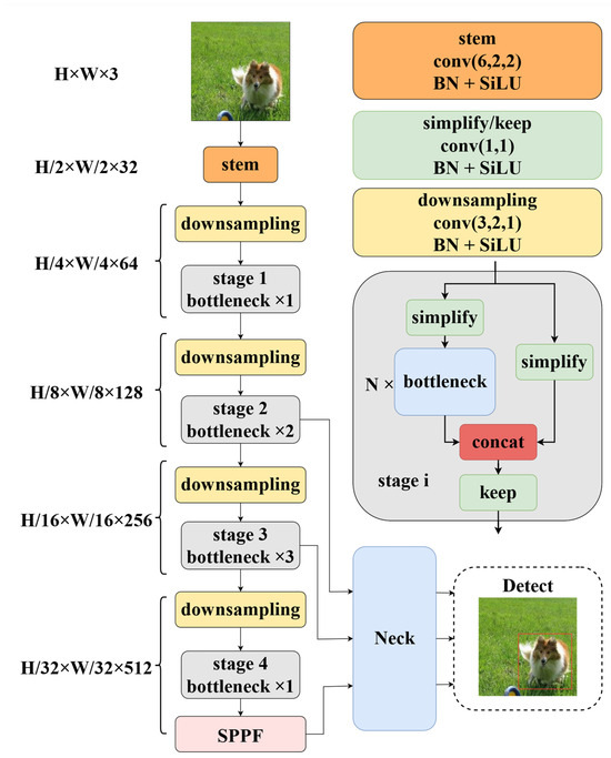 Object detection algorithms can be broadly categorized into two types: Two-stage algorithms [1,2,3] that involve candidate region extraction and classifier prediction, and one-stage algorithms [4,5,6] that combine feature extraction and target classifier prediction directly. Among single-stage algorithms, the YOLO family, particularly YOLOv5, balanced accuracy, speed, ease of training, and deployment. In addition to its excellent scalability resulting from the integration of numerous tricks and modularized code, YOLOv5 also provides lighter versions. But we are still in the predicament that although the detection ability of large CNN [7] or transformer [8,9]-based detection algorithms is very close to human or even beyond, their huge computational cost makes it difficult to be widely used in production and life. The vision tasks will be oriented to both the colorful nature and also be applied to some special situations in specific domains, which puts a higher demand on detectors with less computational resource consumption. When we apply YOLOv5 and other algorithms trained on generalized datasets to domain-specific datasets, some limitations arise, including poor detection of small targets, insufficient adaptation to complex backgrounds, and limited ability to deal with target deformation and attitude changes. Addressing these issues while maintaining the algorithm’s efficiency has emerged as a critical focus in object detection.