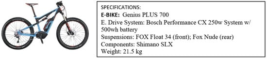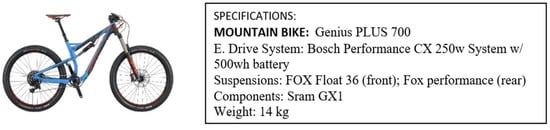 The specifications of the electric-assisted mountain bike (E-MTB) used in the study.