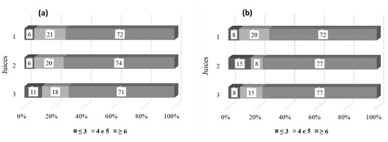 - Pontes, P.R.B.; Santiago, S.S.; Szabo, T.N.; Toledo, L.P.; Gollücke, A.P.B. Atributos Sensoriais e Aceitação de Sucos de Uva Comerciais. Food Sci. Technol. 2010, 30, 313–318. [Google Scholar] [CrossRef]