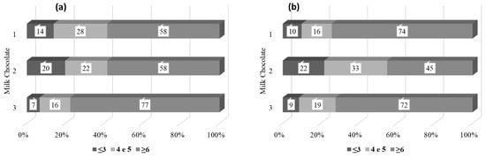 | Chocolate’s characteristic color | * | 0.762 a | 0.616 b | 0.384 c | 0.682 ab | * | 0.709 a | 0.556 b | 0.212 c | 0.675 ab |