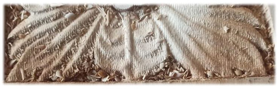 Moreover, due to the gilding that exists on the original Bema door, many of its wood-carved details had been blunted to some extent. Since gilding was to be applied to the final copy of the Bema door in one of the next stages, it is evident that, by preserving these faded features of the original gilded Bema door in the final gilded copy as they were, there was a possibility that many of its wood-carved details would no longer be apparent. In addition, in an old wood-carving over 400 years old, such as the studied one, there will certainly be some micro-cracks or other alterations/deteriorations of the material surface and probably of the design/shape. The handmade work that followed resulted in the highlighting of the details of the wood-carving and refining of its surface configuration (Figure 5).
