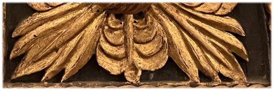 Detailed view of the finishing work on the lime wood implemented by wood-carvers’ handiwork.