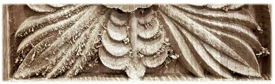 The CNC machining of the lime wood resulted in the overall appearance of the wood-carving, it bearing all the embossed features of the original Bema door, but with the surface quality being quite rough and without the final depth of carving achieved, details which are necessary since they enable the wood-carver to process it (Figure 4).