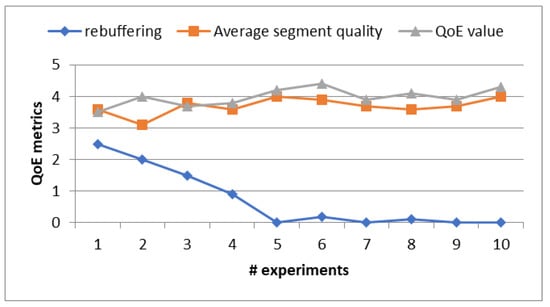 This experiment was conducted using the remaining 30% of video sequences and Network Norway Datasets. As a result, it can be confirmed that the number of rebuffering events decreases linearly according to experiments. Also, we observed that there were no rebuffering events after five experiments. The average segment quality and QoE value are high across the experimental timeline. From the experimental results, it can be conferment that the proposed approach has improved the overall QoE values using the video sequences dataset with a very wide range of wireless network conditions.