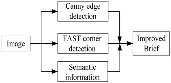 where , is the semantic information respectively. The BRIEF descriptor of the dimension is obtained by logical operations. Therefore, a binary descriptor of bits is formed for the feature point , as shown in the following equation: