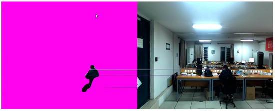 During the process of matching feature points in the left and right camera images, semantic information is effectively utilized to eliminate unmatched feature points. Subsequently, a brute force algorithm is applied to calculate the Hamming distance for each feature point. The minimum Hamming distance value is then compared against a predetermined threshold. If the calculated distance is less than or equal to this threshold, it indicates a match between two points; otherwise, they are considered mismatched. Furthermore, all qualifying features are sorted based on the number of identical elements in their respective bits, with those having the highest count being selected as matching features. It should be noted that no rotation or scale transformation occurs between corrected binocular images; therefore, polar constraints are incorporated into the matching algorithm. By searching for feature points within two pixels above and below the pole during the matching process, not only can accuracy be improved but also computational time can be reduced.