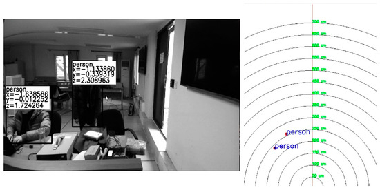 The results of the indoor target’s static positioning are illustrated in Figure 8. The tester remains stationary at various locations within the camera’s field of view, displaying the type and location coordinates of the target.