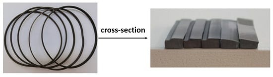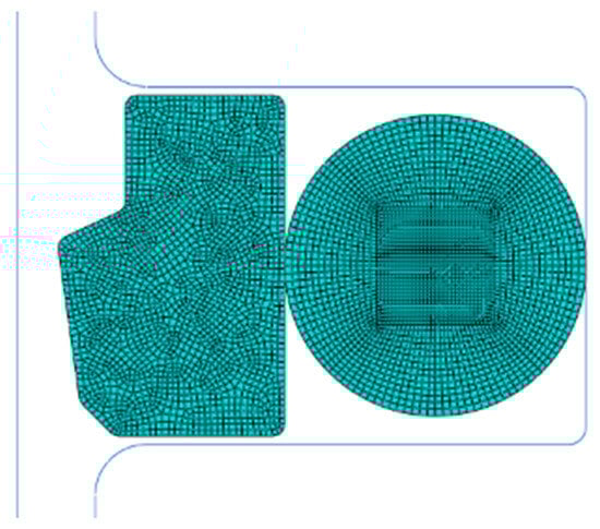 The cylinder body and piston rod were treated as analytical rigid bodies and did not require meshing. Meshing was performed only for the step seal ring and O-ring. The step seal ring was meshed using CAX4R elements with reduced integration, totaling 2128 elements. The O-ring was meshed using CAX4RH elements with reduced integration and was segmented to improve convergence during simulation and to define contact surfaces. The meshing of the O-ring consisted of a total of 2580 elements, as shown in Figure 6.