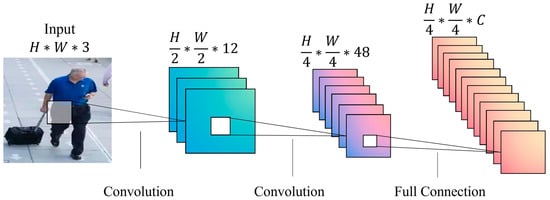 The cross-entropy loss is used as the loss of the classification model to measure the dissimilarity between the predicted values and the actual ground truth. In the context of the person re-ID task, a smaller cross-entropy value indicates that the model’s judgment of the pedestrian category aligns more closely with the true label. The cross-entropy loss function is defined as follows in Equation (4):
