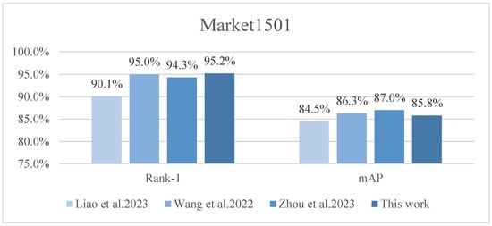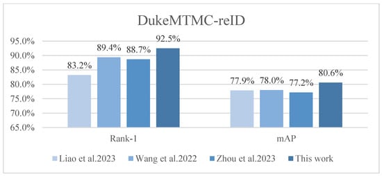 Comparison results between the models in [,,] and our model on DukeMTMC-reID.