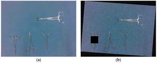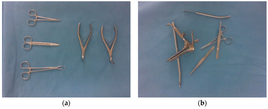 Surgical instruments image examples in the dataset: (a) is the example of non-stacked; and (b) is the example of stacked surgical instruments.