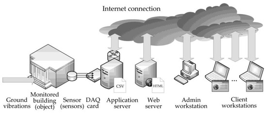Complete commercial solutions dedicated to vibration measurement are available. Their disadvantage is the high purchase costs and the ability to carry out measurements only to the extent provided by the software from the manufacturer. The discussed system for measuring and recording the kinematic impact on building structures is an open-access system. The system characteristics include: