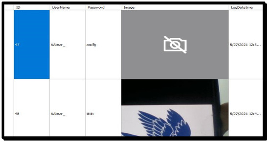 When the user tries to log in with the wrong password, a message will be displayed. In addition, an email will be sent to the user that alerts the user that someone was trying to log in to their account. Further, the proposed scheme provides a unique option of storing the information related to each log-in attempt in a log file, as shown in Figure 8. This helps the user to identify any illegal attempt by the attacker.