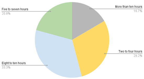 Table 11 and Figure 20 show how long per day participants use social media, where the majority of them spend 8–10 h.