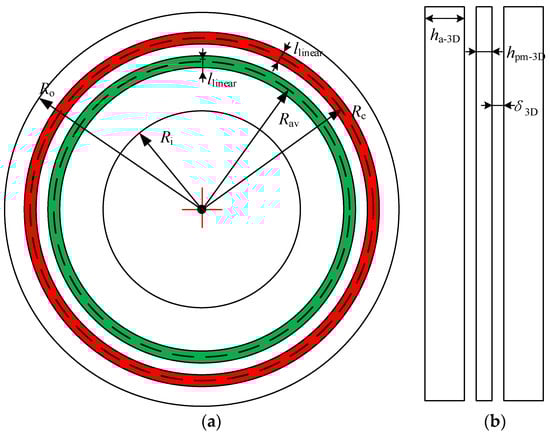 - Afterward, an equivalent linear motor model of each layer of a thin circular ring is established in sequence, where the length of the linear motor model is consistent with the average radius circumference, and the tooth slot size of the linear motor is consistent with the previous calculation result;