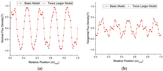 In the above setting mode, calculate the two linear permanent magnet synchronous motor models with dimensions that differ by two times, as shown in Figure 6, and obtain the following calculation results: