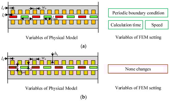 Therefore, when applying the analogy effect, attention should be paid to keeping the magnetic flux density of each part in the two models before and after the analogy unchanged. To achieve this goal, taking the 2D linear motor model in Figure 5 as an example, the corresponding relationship between the analog models is as follows: