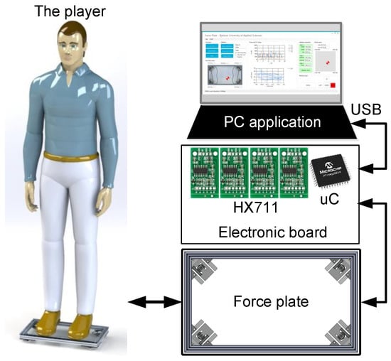 A force plate is a mechatronic device that measures the ground reaction force caused by movements of the human body, such as walking, running, or jumping. Research on human walking, balance, and postural stability is often related to an assessment of the center of mass (CoM) of the human body, as well as measuring its center of pressure (CoP) [1,2,3]. The human body’s CoP is defined as the point in the transverse plane of the human body that represents the total force acting on a person’s feet, and it can be quantified directly by using a force plate [4,5].