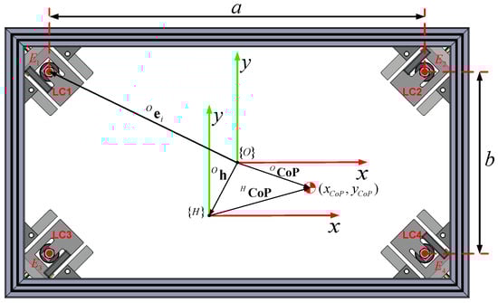 The position vector () of each individual load cell in the global frame {O} can be expressed as follows: