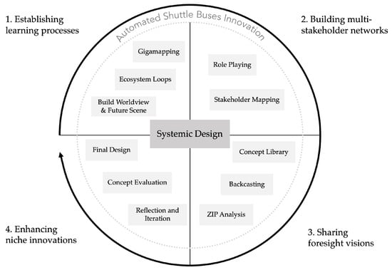 Diagram of systemic design tools related to automated shuttle buses innovation strategies.