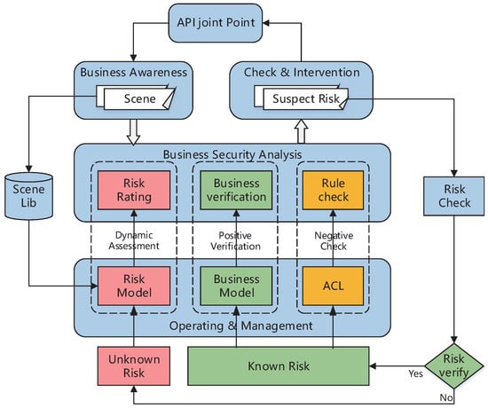 LiSEA orchestrates a strategic amalgamation of three synergistic mechanisms as follows: the risk model, the business model, and ACLs. This strategic fusion acts as a robust bulwark against both familiar and novel risks, serving as a cogent response to Research Question 2 (RQ.2). In addressing unknown risks, LiSEA’s API intervention points discern pertinent business contexts, subsequently underpinning a dynamic evaluation of risk by interfacing with the risk model. This process is further expedited through the constitution of a repository housing a spectrum of well-defined business scenes. This repository augments the evaluation speed of the risk assessment model. Conversely, for known risks, the efficacy of API calls is positively affirmed in congruence with the tenets stipulated within the business model. Complementing this, ACL proves instrumental in delineating forbidden API calls in line with stipulated security policies. This multidimensional assessment, premised upon risk evaluation, business validation, and rule analysis, culminates in a determination of whether an API call merits blocking, as visually explicated in Figure 3.