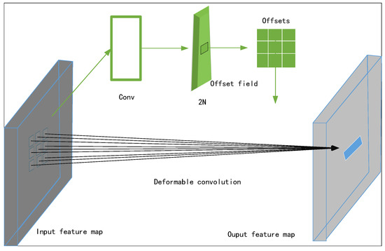 - Dai, J.; Qi, H.; Xiong, Y.; Li, Y.; Zhang, G.; Hu, H.; Wei, Y. Deformable convolutional networks. In Proceedings of the IEEE International Conference on Computer Vision, Venice, Italy, 22–27 October 2017; pp. 764–773. [Google Scholar]