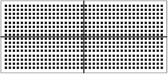The division of the array antenna into four beams is used as an example to illustrate the method of this paper. Assume that Figure 6 represents the entire SOTM array antenna, where the black squares represent the elements. The number of black squares does not represent the specific number of elements in the array antenna; it is for illustration purposes only.