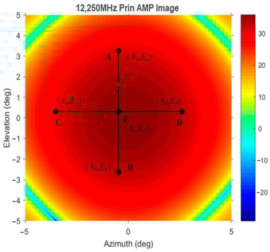 After obtaining point E’s coordinate values in the directional pattern, the array antenna runs as a whole and uses single-beam alignment to obtain the increment of the azimuth and elevation angle values of point E relative to point C (or D) and point A (or B), respectively.