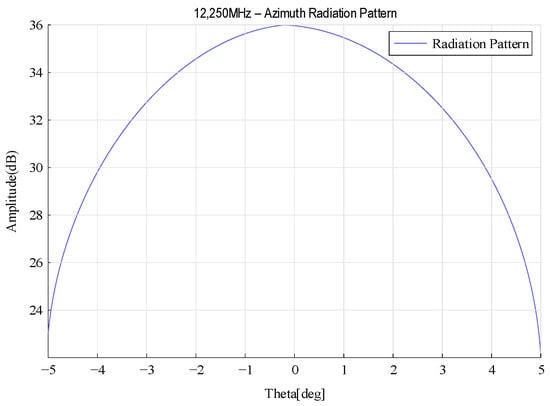 For the second stage of the SOTM system, when the SOTM antenna loses satellite connection, it is likely that the midpoint of the directional pattern is not within the range formed by connecting points A, B, C, and D in Figure 10. In this case, calculations need to be performed. Here, we take the azimuth angle as an example to illustrate. First, the azimuth directional pattern of the main lobe is given, as shown in Figure 11.