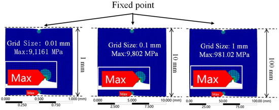 Considering the size discrepancy at the millimeter scale between the shape and the unit circle, a global stress scaling factor is employed in this paper for normalization purposes. As depicted in Figure 6, by holding the distance between the fixed point and the point of applied force constant, the alterations in the shape of the force-applied region have negligible impacts on the resultant maximum equivalent stress. When ensuring consistency in the mesh count, as per the representation in Figure 7, an inverse relationship between the maximum equivalent stress value and side length is evident. Their product, however, demonstrates minimal fluctuations. From the above observations, during the mapping process, it is discerned that the factors affecting the peak stress predominantly hinge on variations in the geometric dimensions, with shape deviations playing marginal roles.