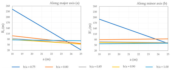 • major axis (a) of 18 m and (b/a = 0.75, 0.80), and