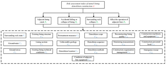 A set of scientific and reasonable index systems should be able to reflect the situation of the whole industry. At the same time, through appropriate transformation, the risk assessment of different tunnel lining demolition construction can be carried out [23,24].