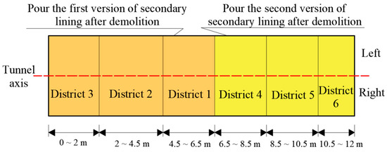 Figure 8. Longitudinal zoning of tunnel secondary lining demolition.