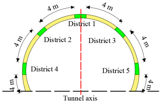 Figure 9. Circumferential zoning of tunnel secondary lining demolition.