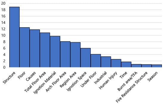 As seen in Figure 7, structure, floor, causes, and total floor area are the critical factors that govern the fire size. It is noted that the burnt area/TFA, fire resistance structure, and season have less influence on the fire size than other parameters.